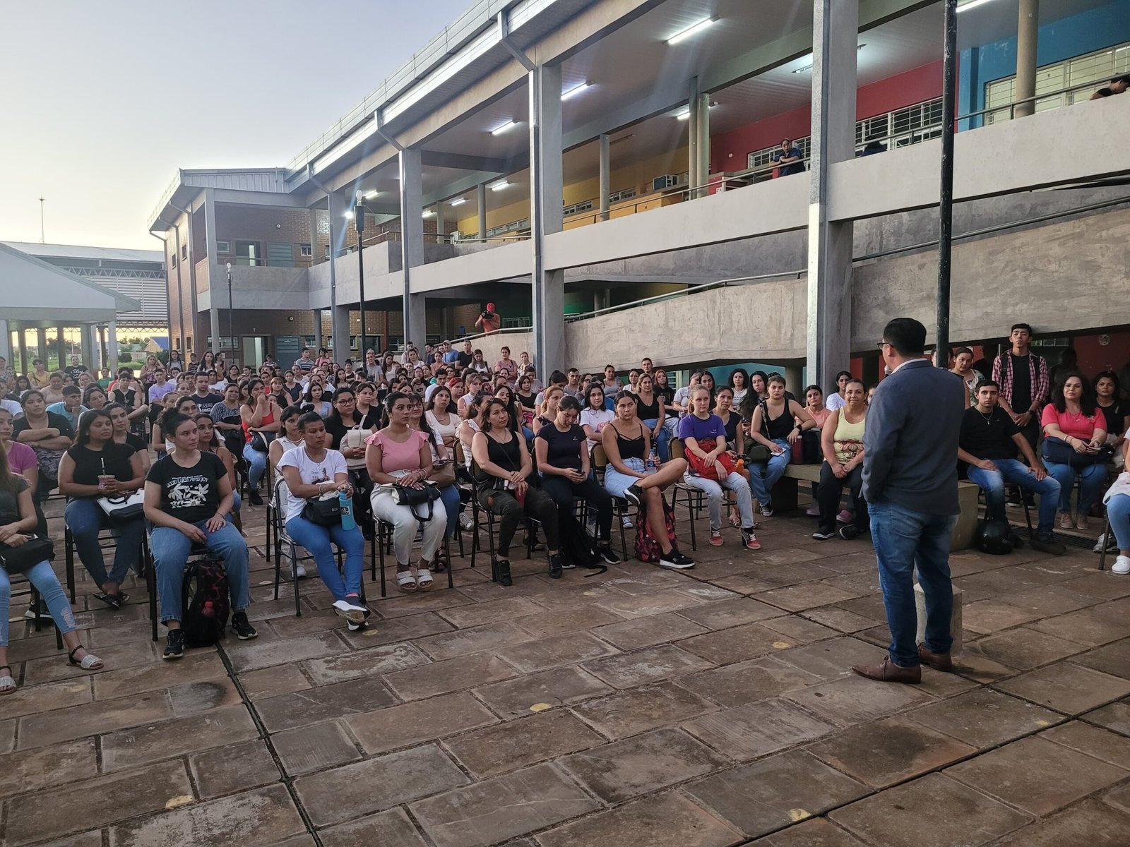 La ceremonia de bienvenida fue presidida por el Rector Lic. Aníbal Arroyos y contó con la participación del Presidente del Consejo General de Educación, Juan Alberto Galarza, quien dirigió unas breves palabras a los nuevos ingresantes.