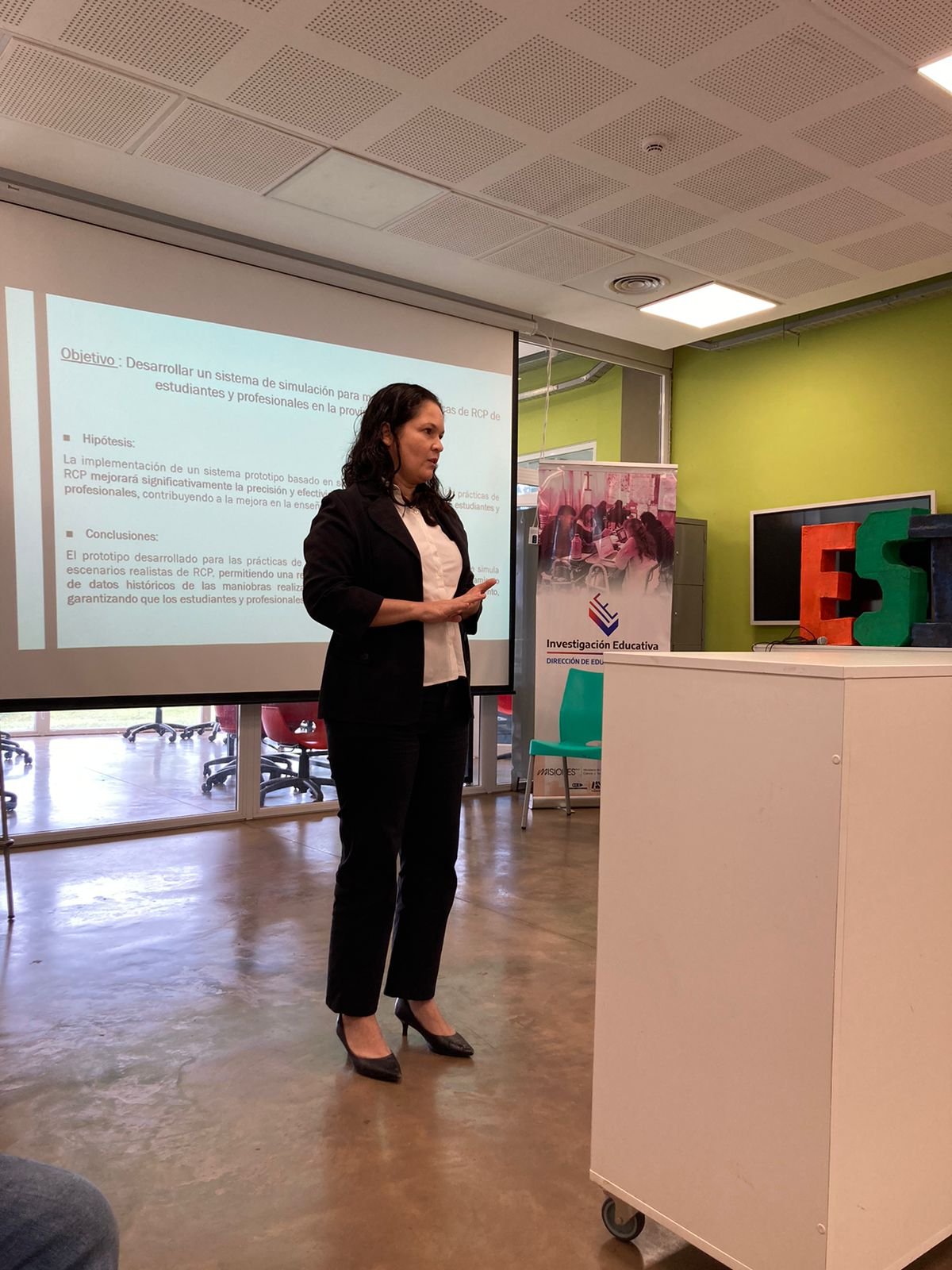 Entre los proyectos destacados del Politécnico, se incluyó el trabajo sobre Aplicaciones de la Automatización y la Robótica en la Formación Superior Técnica, en el cual se exploraron iniciativas como la Línea automatizada de selección y descarte de productos y un prototipo para las prácticas de RCP (Reanimación Cardiopulmonar). Este último proyecto, desarrollado en colaboración con la carrera de Enfermería, busca mejorar la precisión y efectividad de las maniobras de RCP mediante simulación y retroalimentación en tiempo real, ofreciendo una herramienta innovadora para la formación de estudiantes y profesionales.