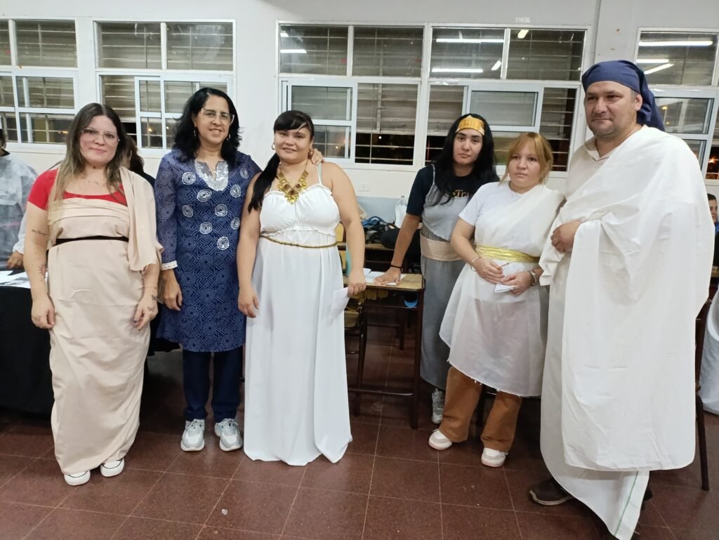 A través de una combinación de investigación, recopilación de datos y exposición oral, presentaron sus trabajos caracterizados con vestimenta alusiva a la época estudiada, lo que sumó un valor simbólico y visual muy significativo a la jornada. Esta dinámica no solo reforzó los contenidos teóricos, sino que también potenció la creatividad, el compromiso y la participación activa del estudiantado.